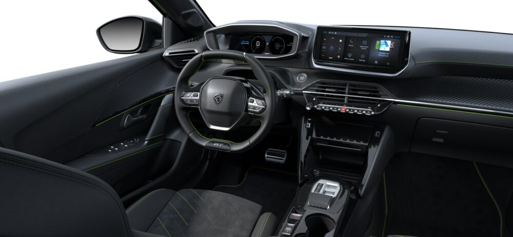GT-utgaven representerer det høyeste utstyrsnivået og kommer med en rekke premium detaljer som standard. Utvendig kjennetegnes den av en unik LED-lyssignatur og stilfulle 17-tommers YANAKA-alufelger , mens den iøynefallende fargen Gul Agueda sørger for at du skiller deg ut i trafikken. Innvendig blir du møtt av et eksklusivt interiør i skinn og Alcantara , samt det prisvinnende Peugeot i-Connect med en 10-tommers digital 3D-instrumentering og en 10-tommers berøringsskjerm. For din komfort er bilen utstyrt med varmepumpe , Proximity Keyless og automatisk klimaanlegg.